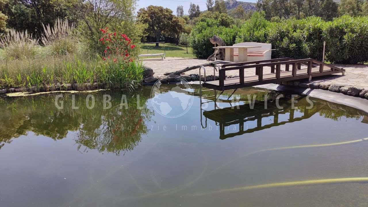 San Pantaleo villa con laghetto San Pantaleo: a soli 5 minuti dal centro storico del piccolo borgo, nel cuore della Costa Smeralda, villetta con laghetto balneabile "piscina" dalla particolare architettura, immersa nel verde e nella quiete della campagna gallurese. La tenuta di circa un ettaro è completamente recintata, anche con muretti a secco. Fitta di alberi di sughere, lecci, giovani olivi ed eucaliptus, attraversata da un caratteristico e suggestivo ruscello. Dalla strada, attraverso un cancello elettrico, si accede al patio lastricato con pietra a vista e con posto auto. La villetta è composta da due camere da letto entrambe con un bagno padronale. Saletta con caminetto, cucina e grande pergola, dalla quale ci si affaccia in una grande veranda scoperta con zona barbecue. Al piano seminterrato, grande garage, zona cantina, zona attrezzi, ripostiglio e bagno. Impianto di riscaldamento a gasolio con radiatori. Nella tenuta, superato il ruscello, in via di completamento (al grezzo e vendibile nello stato di fatto) è presente un’altra costruzione, denominata “stalla”, di circa 33 mq. Quest’ultima parte può essere interessante perché offre la possibilità di una “dependance”. Davanti alla villa, un ampio solarium nella zona laghetto, unico nel suo genere. Il laghetto "piscina" fuori dagli schemi soliti, si presenta con un sistema di fito-depurazione, per cui non necessita di prodotti chimici per il suo mantenimento. Pozzo per acqua ed acqua grezza del Consorzio. “Il presente annuncio non costituisce elemento contrattuale. Vi invitiamo a contattare l’ufficio per verificare disponibilità dell’immobile e la sua precisa corrispondenza alla descrizione dell’annuncio. Alcune voci relative alle caratteristiche dell’immobile, anche presenti nella stessa descrizione, come: superfici, spese condominiali, etc. potrebbero essere inesatte o da verificare. La visione degli immobili verrà effettuata solo previa sottoscrizione del rapporto di visita ed autorizzazione al trattamento dei dati personali. E se abiti lontano, puoi prenotare una visita sull’immobile con video chiamata su WhatsApp o su Telegram. I nostri agenti immobiliari e la segretaria sono a Vostra completa disposizione per qualsiasi informazione in merito al presente annuncio e su tutto ciò che concerne l’iter di una compravendita immobiliare. Ufficio San Pantaleo (Costa Orientale) – Olbia (SS): via Zara 30/b – tel. e WhatsApp +39 335.7662415 Salvatore Scanu SEDE: Ufficio di Alghero (SS): via f.lli Kennedy 1 (Largo San Francesco) tel. 079.982471 – WhatsApp +39 3207678134 Tutte le nostre proposte immobiliari sul nostro portale www.globalservicesimmobiliari.it”